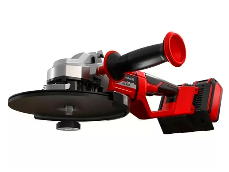 La amoladora angular con batería AXXIO 36/230 Q de Einhell es un ayudante probado al separar y pulir. Sea metal o piedra: Las posibilidades de uso son múltiples. La amoladora angular es miembro de la familia Power X-Change, al funcionar se necesitan 2 baterías de 18 V. Con esta tecnología TWIN-PACK y el motor sin escobillas se garantiza más potencia y una duración mayor. La tuerca de sujeción rápida aporta un cambio de disco rápido y sin herramientas. El agarre principal giratorio ofrece flexibilidad máxima, la protección de disco con regulación rápida permite un trabajo flexible. La función antivibración ofrece un trabajo sin vibraciones. La forma constructiva esbelta con agarre suave ergonómico permite usos cómodos, el agarre adicional puede montarse flexiblemente en 3 posiciones. Así la amoladora angular con batería ofrece un amplio espectro de aplicaciones mediante la profundidad de separación muy grande de 70 mm. Arranque suave y protección a rearranque aportan elevada seguridad del usuario, la protección de batería protege de chispas y polvo. La robusta carcasa de engranaje de aluminio y la protección a sobrecargas aportan duración. Para mejores resultados se recomiendan baterías 3,0 Ah o superiores. El envío se realiza sin batería ni cargador, estos son adquiribles por separado como práctico kit de principiante, y sin disco de corte.
