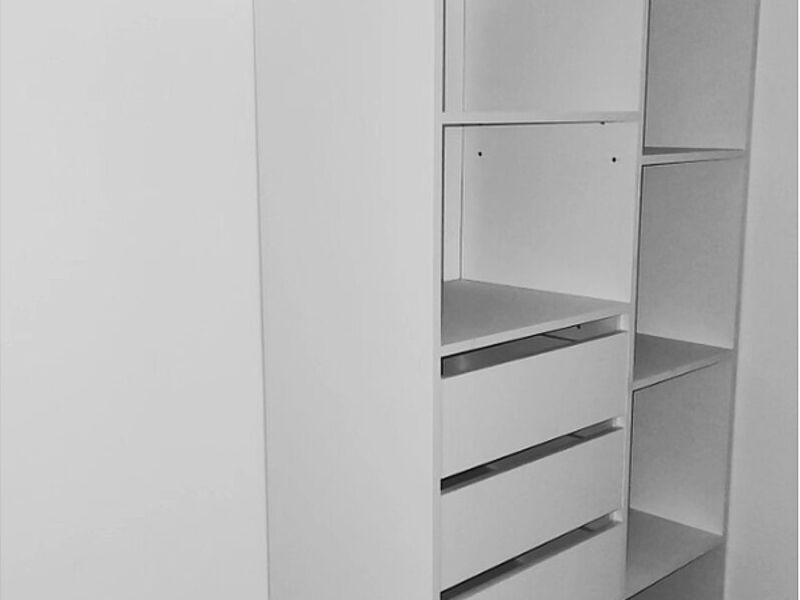 El interior de un armario puede estar dividido en secciones con estantes, barras para colgar ropa, cajones y compartimentos específicos para diferentes tipos de artículos. Estos diseños interiores pueden adaptarse según las necesidades individuales de almacenamiento.