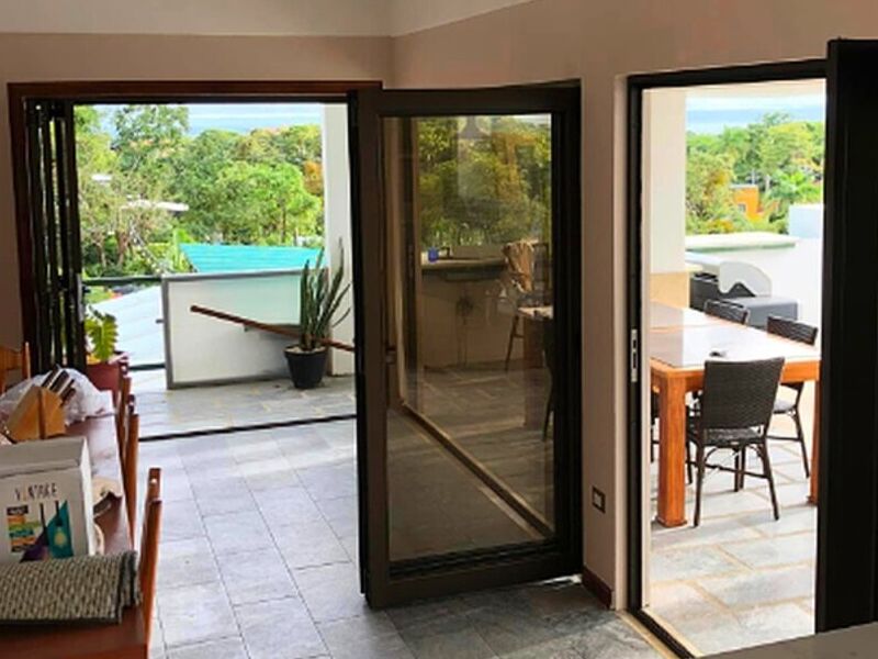 Consiste en un marco que rodea una abertura rectangular, y una hoja (o varias hojas) que se mueve para abrir o cerrar la abertura. La hoja de la puerta puede estar hecha de diversos materiales, como madera, metal, PVC o vidrio, y puede tener características adicionales como paneles decorativos, vidrieras, o elementos de seguridad como cerraduras y bisagras.