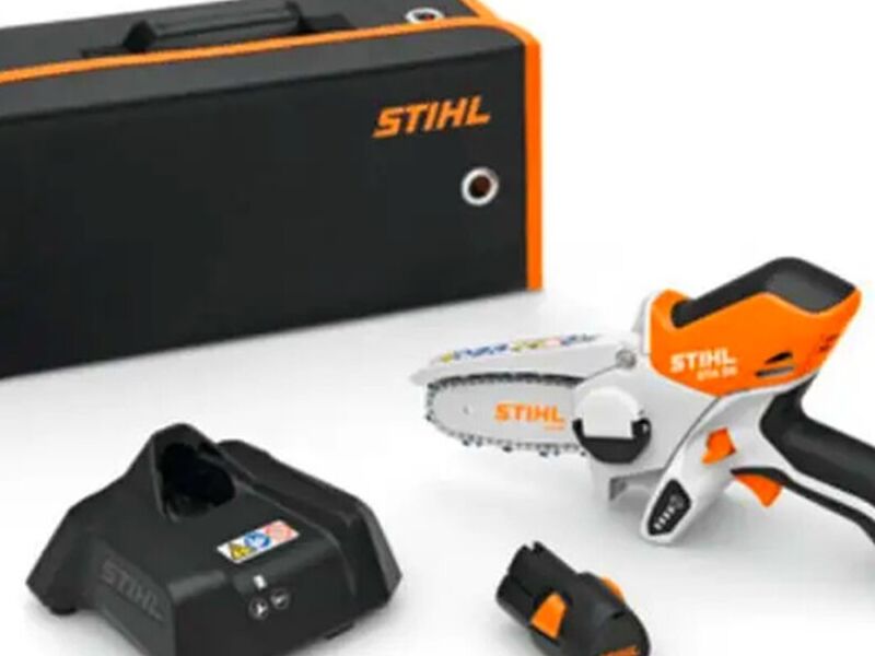 Minisierra de batería, para la poda de árboles y arbustos, cortar ramas verdes y trabajar con madera. Cadena de 1/4" para un alto rendimiento de corte. Manillar antideslizante para una ergonomía perfecta y sustitución de la cadena sin herramientas, cubierta protectora flexible para un trabajo seguro, con indicador de nivel de carga. Kit compuesto por: 1 x batería AS 2, 28 Wh, 10,8 V 1 x cargador AL 1 1 x Mini-sierra de batería GTA 26 1 x Bolsa de transporte negra/naranja con orificios para colgar en pared.
