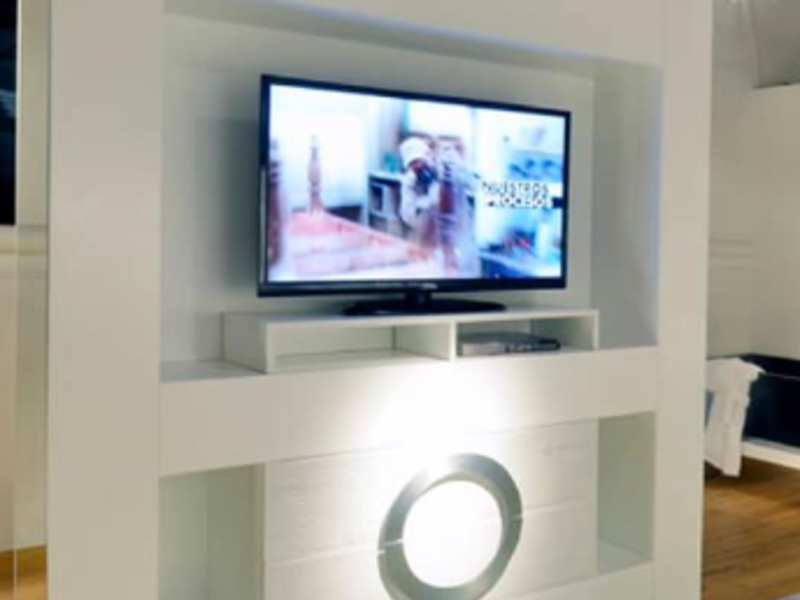 Las mesas de TV suelen tener una estructura sólida y estable diseñada para soportar el peso del televisor y otros dispositivos electrónicos. Pueden variar en tamaño y forma dependiendo del tamaño del televisor y del espacio disponible en la sala. Algunas mesas de TV son simples plataformas elevadas para el televisor, mientras que otras tienen estantes y compartimentos adicionales para almacenar equipos y accesorios.