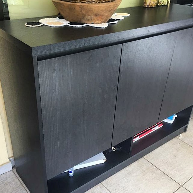 El mueble en melamina ébano negro es una opción elegante y moderna, ideal para diversas aplicaciones en el hogar o la oficina.