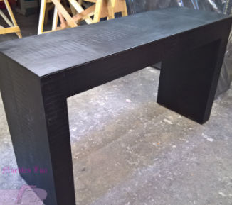 Mesa auxiliar de madera, posiblemente con detalles modernos. Ideal para colocar junto a sofás o como mesa lateral.