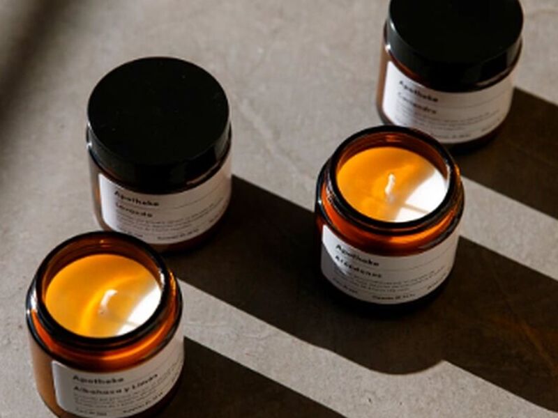 velas ecológicas de cera 100% de soja sin aditivos, mechas de algodón y fragancias con un alto concentrado de aceites esenciales.