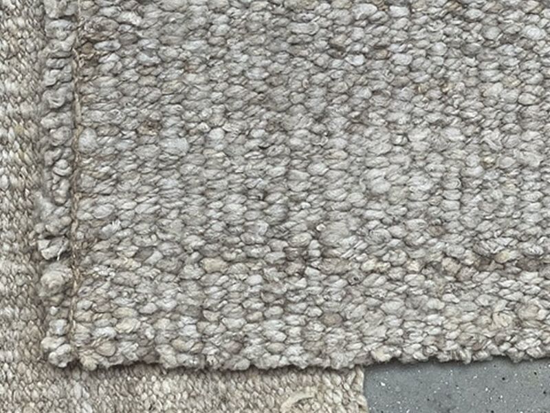 Nuestras alfombras no tienen en la base ningún otro material. Sólo lana. El reverso de la alfombra es igual a la parte superior, por lo que la alfombra se puede usar de ambos lados.