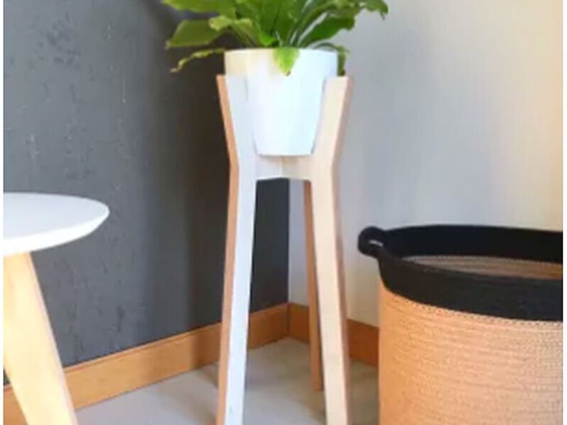 Pie de maceta encastrable en madera melamina.