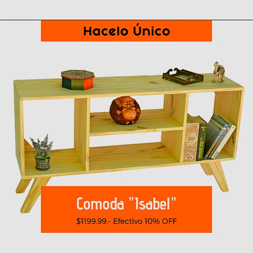 La cómoda "Isabel" es una hermosa pieza de mobiliario que combina funcionalidad y elegancia. Con dimensiones de 120 cm de ancho, 65 cm de alto y 30 cm de profundidad, esta cómoda ofrece amplio espacio de almacenamiento, perfecta para organizar ropa, accesorios y otros artículos del hogar.