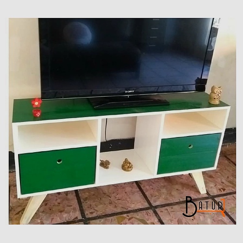 Este mueble para TV cuenta con dos cajones amplios que ofrecen un espacio de almacenamiento ideal para controles remotos, cables y otros accesorios, ayudando a mantener tu espacio organizado y libre de desorden. Además, sus espacios abiertos son perfectos para colocar dispositivos multimedia como reproductores de DVD, consolas de videojuegos o decoraciones personales. Su diseño no solo es práctico, sino que también se convierte en un elemento decorativo que realza el ambiente de tu hogar.