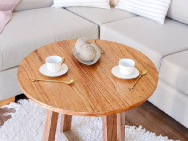 Mesa con tapa de madera paraiso y base en madera marmelero.