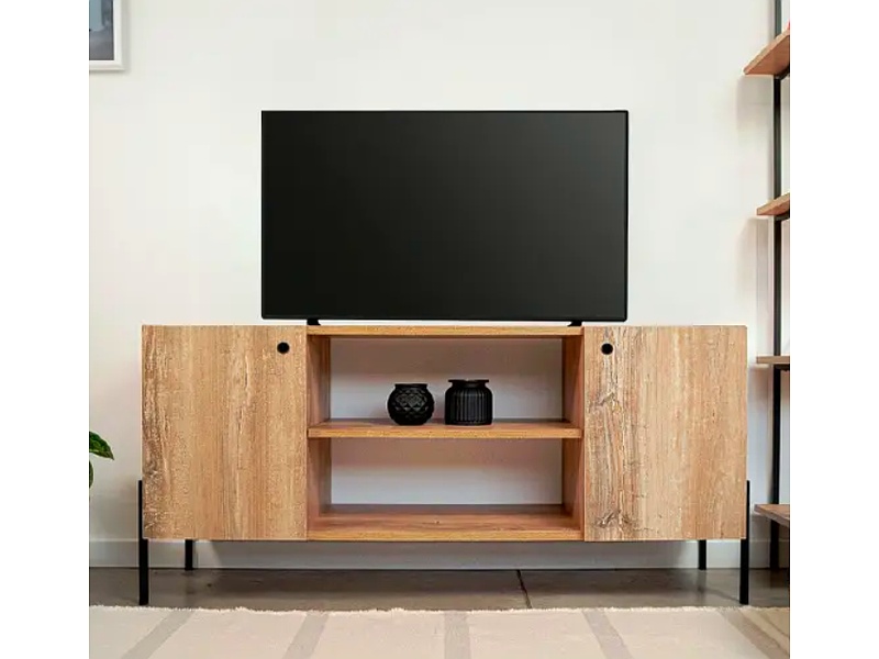 Este mueble ha sido diseñado pensando en la funcionalidad y el estilo, proporcionando un lugar práctico y elegante para su televisor y otros dispositivos electrónicos.