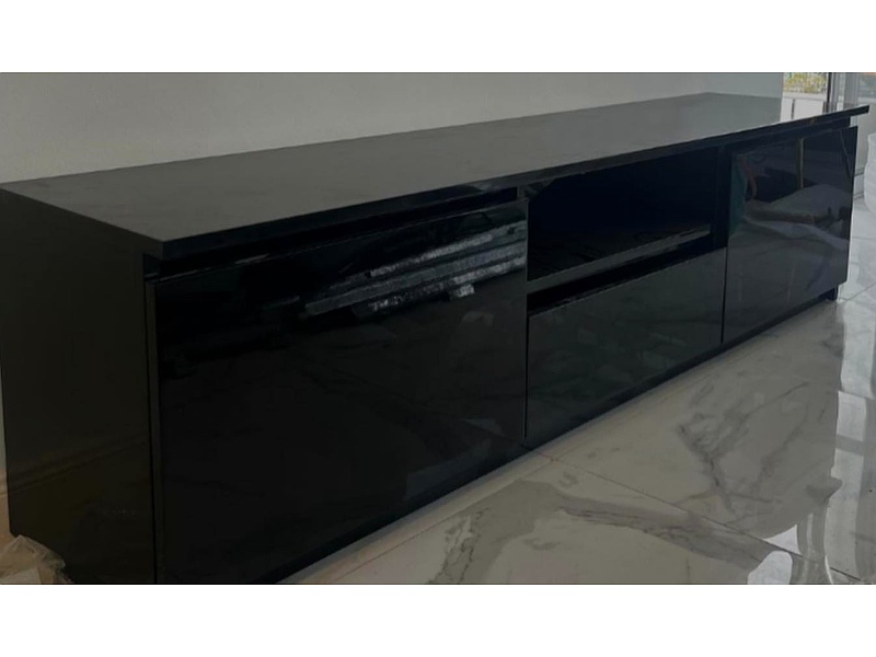 Este aparador negro brillante combina sofisticación y estilo moderno. Su acabado de alto brillo resalta en cualquier espacio, mientras que su diseño elegante proporciona tanto almacenamiento como un toque de lujo, ideal para salones o comedores contemporáneos.