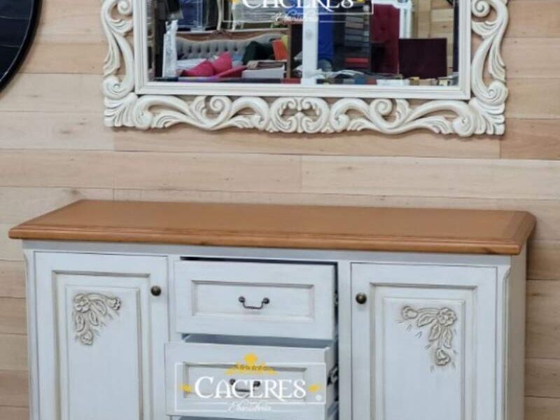 Realizado en madera maciza, tallado artesanalmente, laqueado en poliuretano color blanco marfil y tapa caramelo!