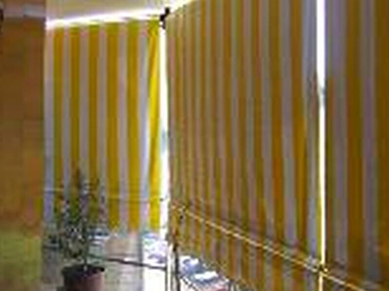 Consulte por nuestros Toldos de lona verticales Toldo enrollable de caída vertical con sujeción final al piso. Ideal para galerías, balcones, quinchos, cerramientos.
