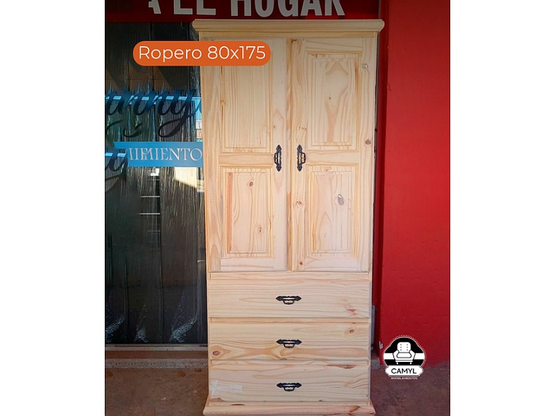 ¡Nuevo modelito de ropero! Sus medidas son de 80 x 175. Cuenta con tres cajones con manijas en cada puerta y cajón.