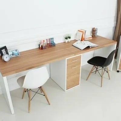 Un escritorio doble es una solución práctica y eficiente para espacios de trabajo compartidos o para aquellos que necesitan un área amplia para realizar múltiples tareas