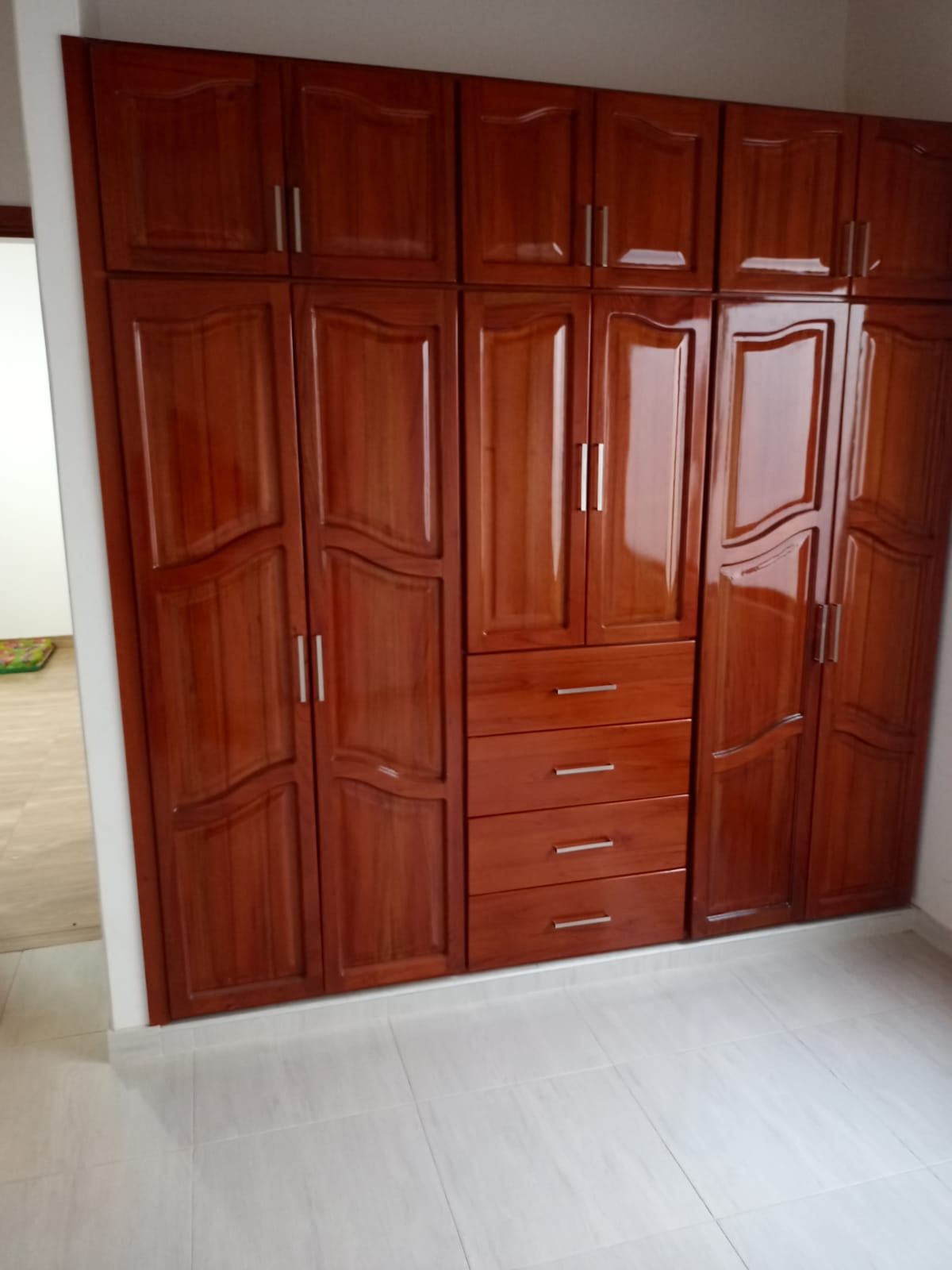 Un closet es un mueble diseñado para almacenar y organizar ropa y accesorios en el hogar. Construido principalmente con madera, ofrece resistencia y durabilidad. Suele contar con estantes, cajones y barras para colgar, facilitando la organización eficiente de prendas y objetos personales. Está disponible en una variedad de estilos y acabados que se adaptan a diferentes decoraciones interiores, añadiendo un toque de calidez y elegancia al espacio.