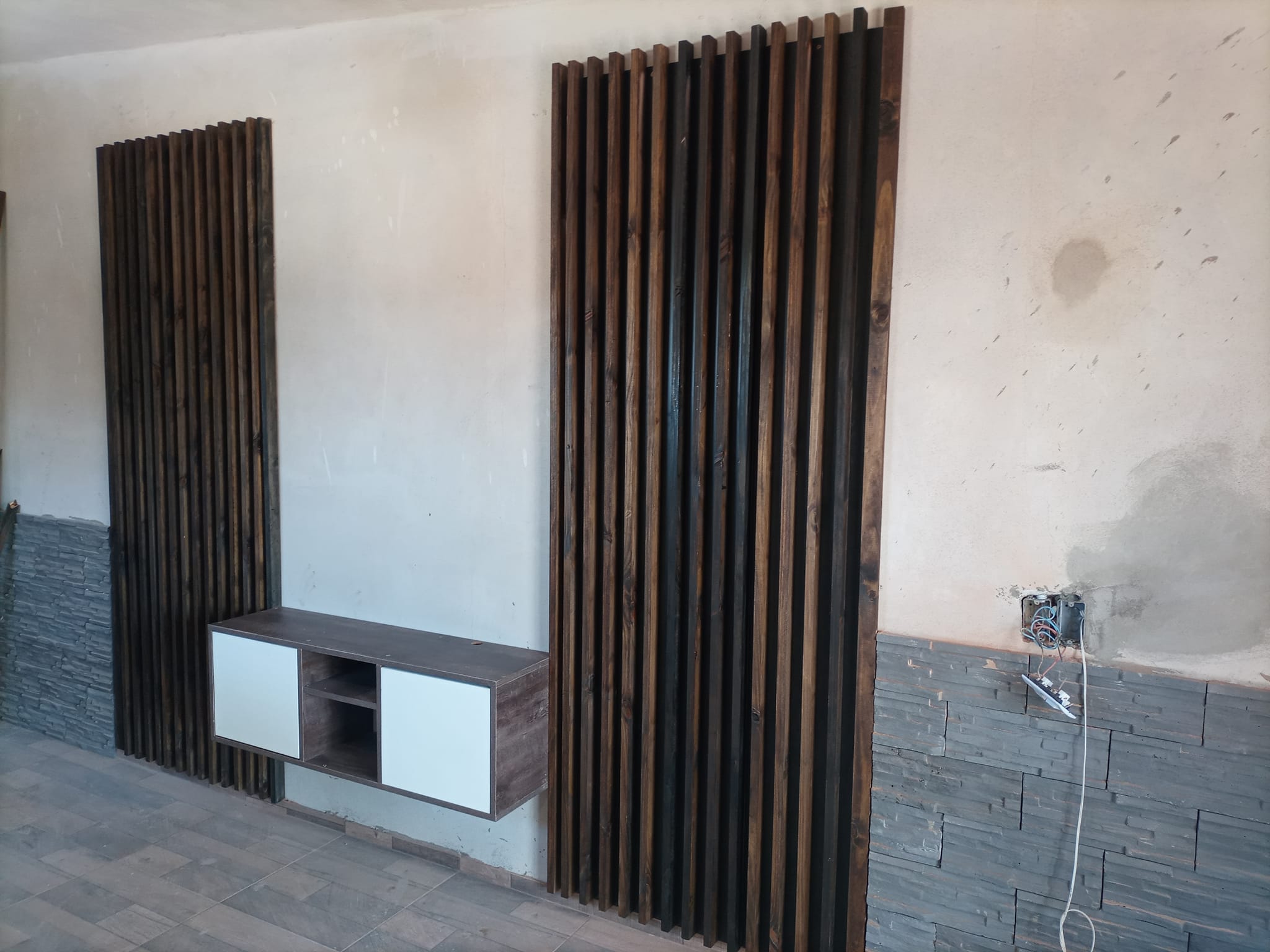 El rack de TV con listones de madera es una pieza que combina funcionalidad y estilo, ideal para salas de estar. Su diseño con listones aporta un toque moderno y cálido, realzando la estética del ambiente