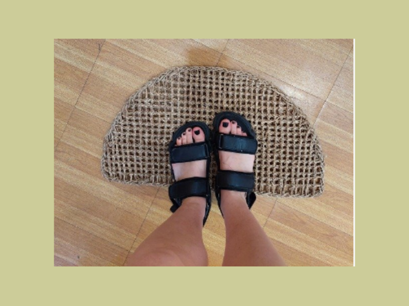 Felpudo semicircular color natural de fibras naturales.