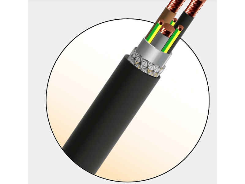 Cable de potencia blindado ultra flexible, desarrollado especialmente para su uso en variadores de frecuencia asociados con motores (VFD) en los que es necesario limitar los efectos de las interferencias electromagnéticas (EMI).