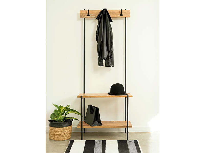 Recibidor industrial, con dos lugares de apoyo y 3 espacios para colgar.