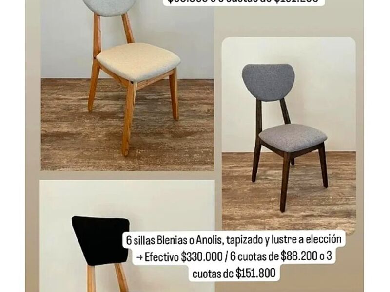 Las sillas pueden estar fabricadas con una amplia variedad de materiales, incluyendo madera, metal, plástico, cuero, tela, mimbre, entre otros. La elección del material puede afectar tanto el estilo estético como la durabilidad y el confort de la silla