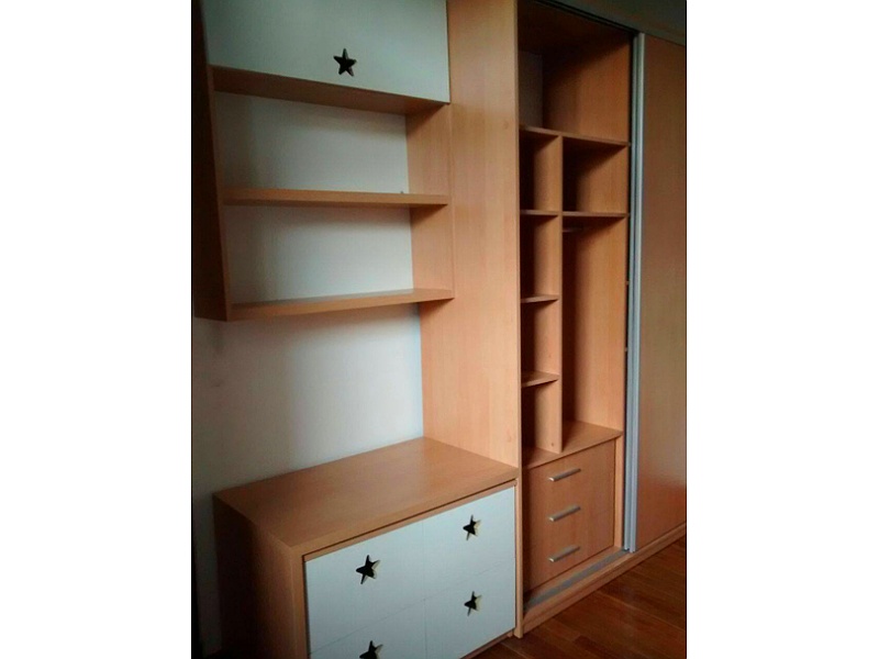 Armario amplio y funcional con varios compartimentos, ideal para organizar la ropa en cualquier dormitorio.