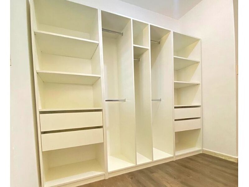 "El vestidor de MDF blanco ofrece un espacio elegante y funcional para organizar tu ropa y accesorios. Con su diseño moderno y acabado en blanco, aporta luminosidad y amplitud a cualquier habitación. Equipado con estantes, barras para colgar y cajones, proporciona un almacenamiento organizado y accesible, convirtiendo tu vestidor en un espacio de lujo y comodidad."