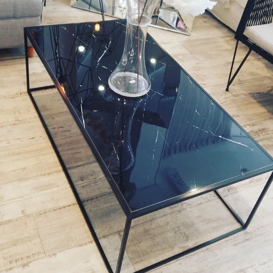 De Hierro Porcelanato brillante simil Carrara, disponible en blanco o negro.