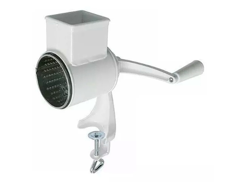 Rallador de queso y pan con dos cuchillas, ideal para uso en mesada.