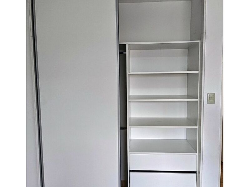 Diseñado para integrarse perfectamente en la estructura de la habitación, ofrece un almacenamiento amplio sin ocupar espacio adicional.
