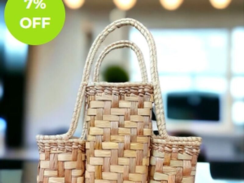 Cesta artesanal matera, elaborada con corteza de palma. Cuenta con 3 particiones individuales.