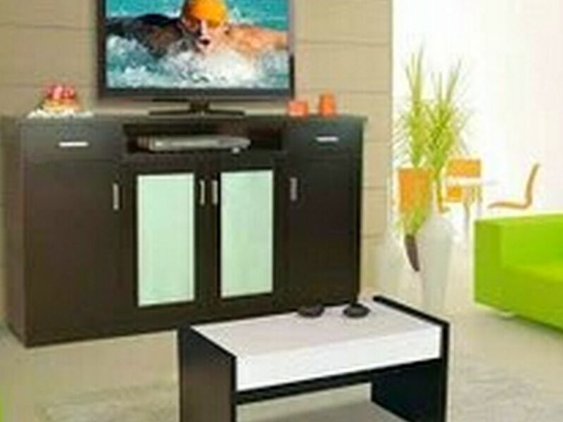 Bahiut laqueado en color blanco, chocolate y wengue, medidas 99 de alto x 160 de ancho x 39 de prof.