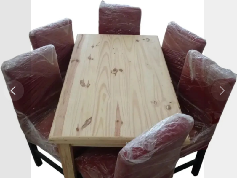 MESA DE PINO 1,40 X 0,80 + 6 SILLAS TAPIZADAS CHENILLE