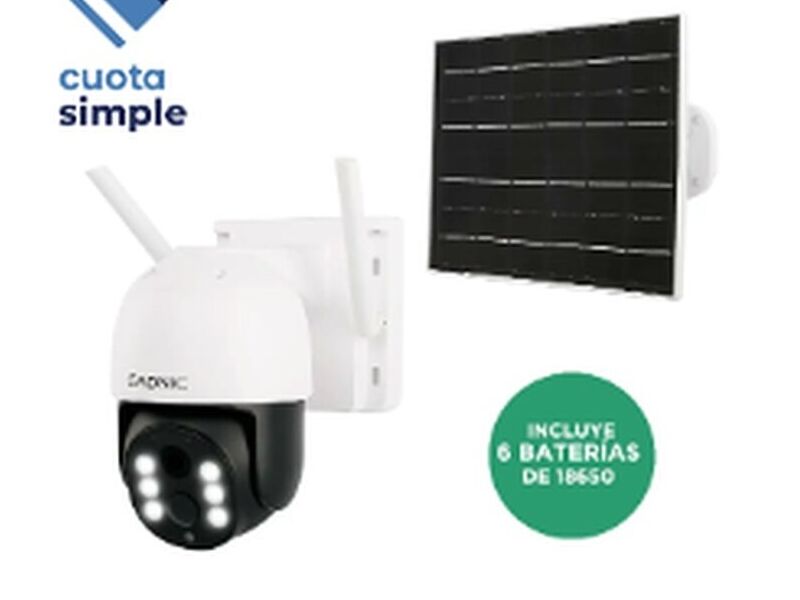 : Cámara de seguridad con panel solar integrado.