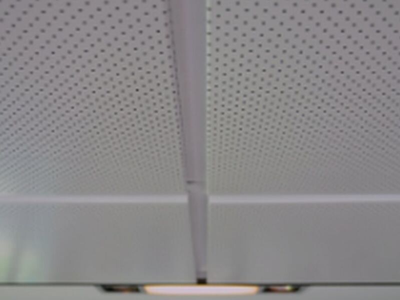 Cielorraso metálico modular de fácil registrabilidad y de bajo mantenimiento. La opción perforada es una bandeja de diseño remarcado por un perímetro liso con un