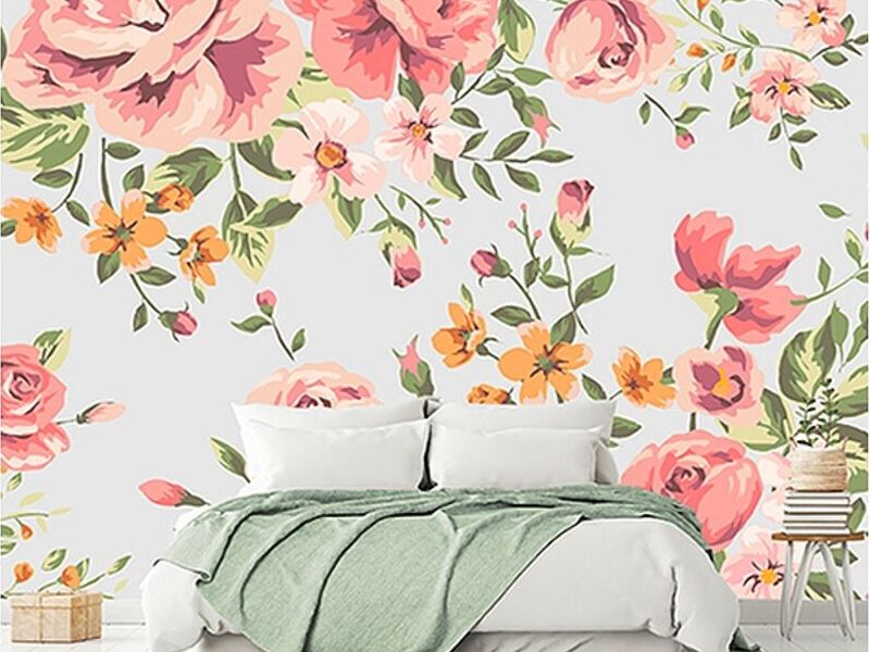 El papel tapiz floral ha sido elegido para transformar este espacio en un oasis de belleza natural y frescura. Este diseño no solo embellece las paredes, sino que también introduce la serenidad y la vitalidad de la naturaleza en el entorno, creando una experiencia visualmente estimulante.