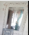 Un espejo con un marco de color blanco, utilizado para fines decorativos y funcionales en espacios como dormitorios, baños o vestidores. Las medidas pueden variar, pero suelen tener dimensiones de 60-100 cm de altura y 40-80 cm de ancho.