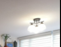 Una lámpara suspendida del techo para proporcionar iluminación ambiental en interiores. Las medidas dependen del diseño y estilo de la lámpara, que pueden variar desde 30 cm hasta más de 100 cm de diámetro en casos más grandes.