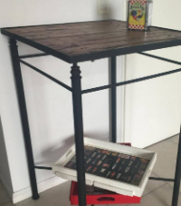 Mesa con superficie cuadrada, adecuada para comedores, salas o como mesa de centro. Fabricada en madera, metal o vidrio, su diseño puede variar desde simple hasta elegante.