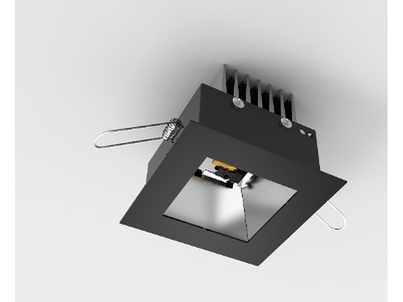 Cuerpo construido en chapa galvanizada con un marco inferior en chapa de hierro pintado en color blanco o negro. Incluye un reflector de aluminio de alta pureza, y resortes de fijación laterales