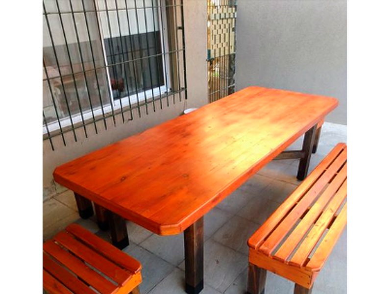 Fabricada en madera de eucalipto; Patas y estructura de pino. Todo encastrado, encolado y sujeto con tornillos, bulones y tarugos. Súper reforzado! Posee un diseño único de soporte para las patas, lo que le da una mayor estabilidad y fortaleza a la mesa.
