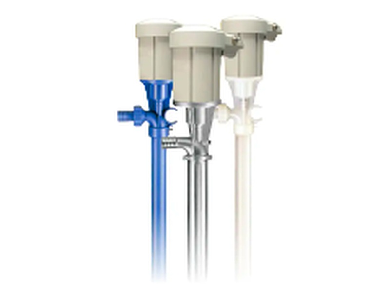 Bombas en configuración vertical, para transferencias de servicio ligero, sin sello mecánico. Ideales para reemplazar bombas manuales. Su diseño portátil permite el movimiento seguro y eficiente de fluidos, evitando la necesidad de trasladar barriles de peso considerable. Fabricada con tubo e impulsor de polipropileno, apta para soportar temperaturas hasta 66°C.