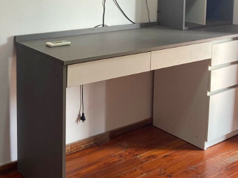 La parte superior del escritorio es una superficie plana donde se puede escribir, colocar una computadora portátil, una computadora de escritorio u otros dispositivos. Esta superficie suele estar hecha de madera, vidrio, metal u otros materiales duraderos.