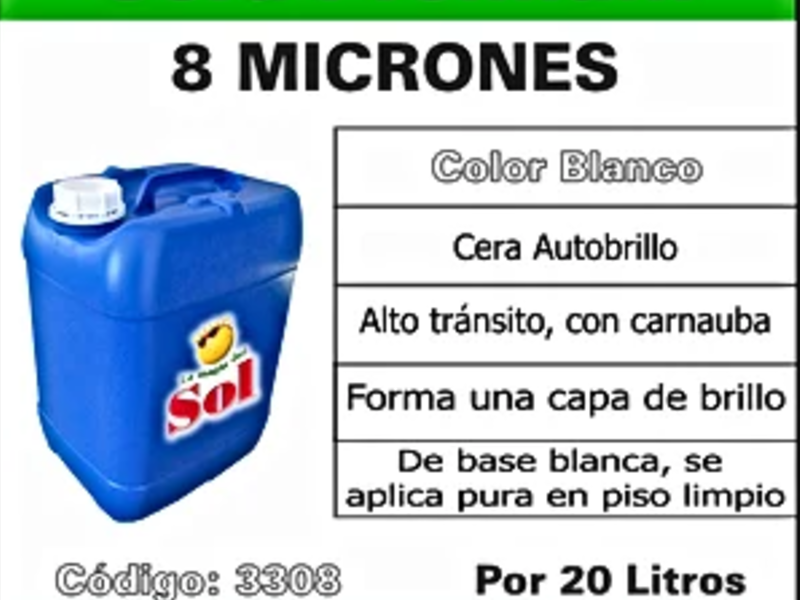 Alto transito, con carnauba Forma una capa de brillo De base blanca, se aplica pura en piso limpio