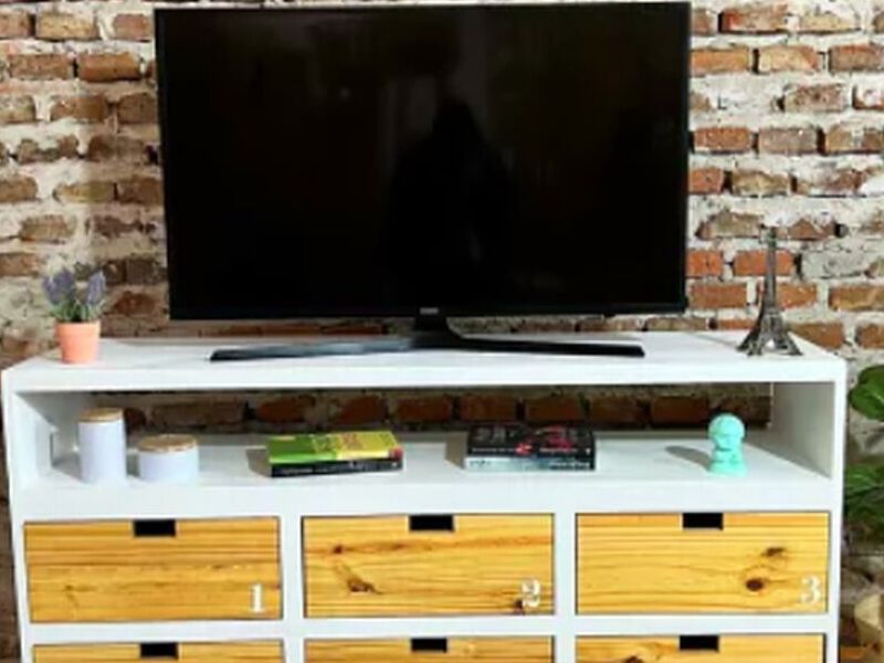 Este mueble ha sido diseñado pensando en la funcionalidad y el estilo, proporcionando un lugar práctico y elegante para su televisor y otros dispositivos electrónicos.