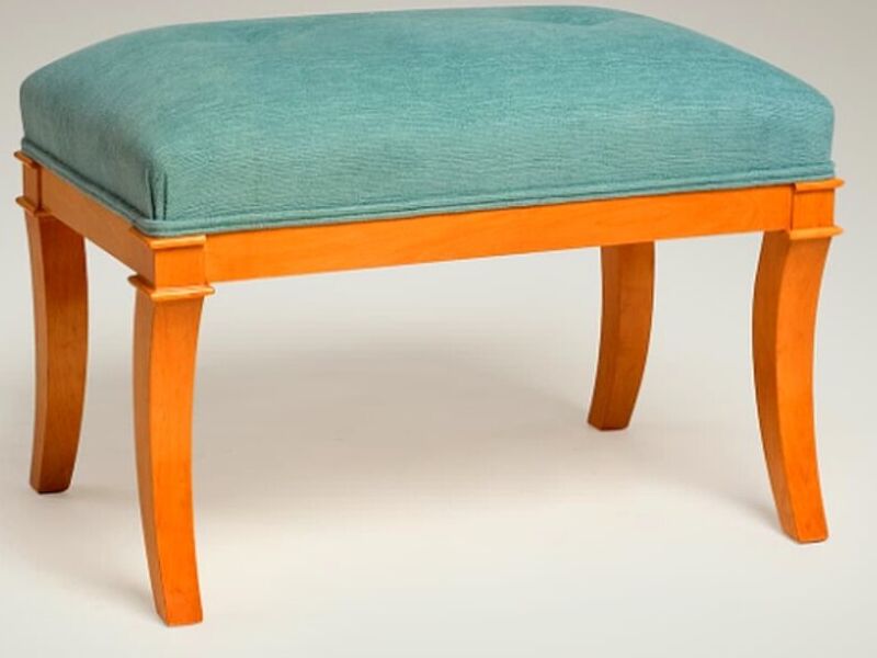 "Banqueta turquesa con estructura de madera: Esta elegante banqueta combina una estructura de madera con un acolchado en tono turquesa, añadiendo un toque de color y comodidad a cualquier habitación de tu hogar."