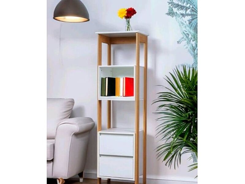 Organiza y exhibe tus libros y decoraciones con esta estantería auxiliar de sala, ideal para cualquier rincón o pared vacía.