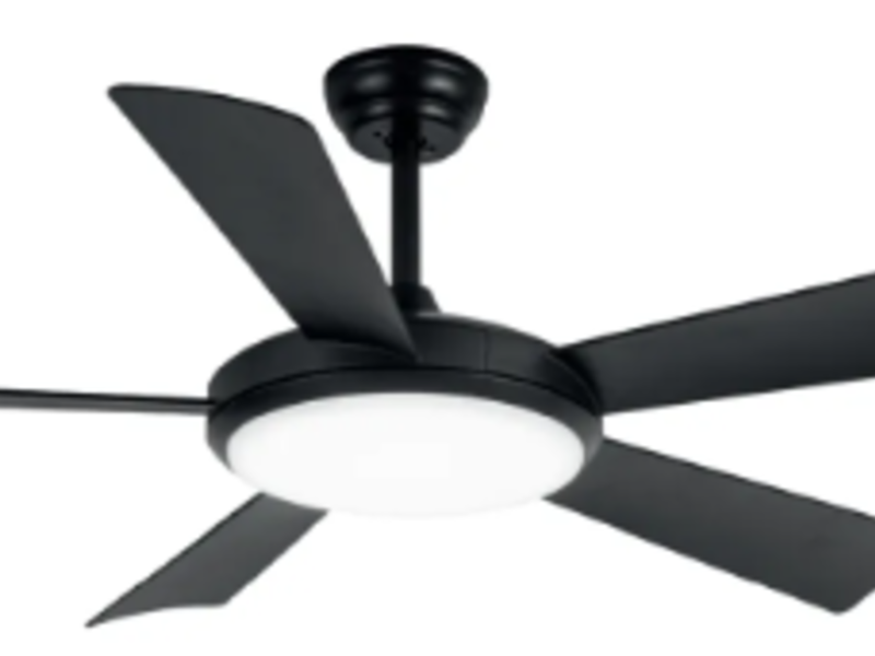 Ventilador de techo decorativo Color: Negro mate Tamaño: 52"/1320mm Motor: DC 153*18/38W Función invierno: se activa con control RPM Mín.: 79 RPM Máx.: 162 Aspas: 5 aspas de ABS Iluminación: 24W LED Tipos de luz: Fría / Neutra / Cálida Control remoto incluido & WIFI Velocidades: 5