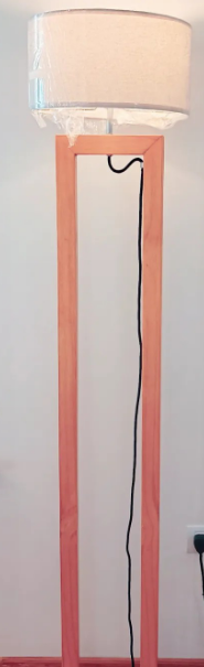 Lámpara de pie con un diseño contemporáneo, hecha de materiales como metal o madera con pantallas de tela o vidrio. Es ideal para iluminar una esquina de la sala o junto a un sillón de lectura. Medidas aproximadas: 160 cm de alto.
