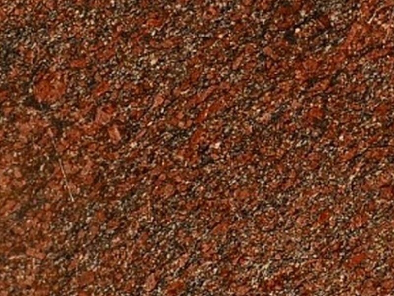 Es un mármol con un color rojo intenso muy oscuro, con tendencia al violeta, con vetas largas y separadas en tonos blancos que lo atraviesan por toda su superficie.